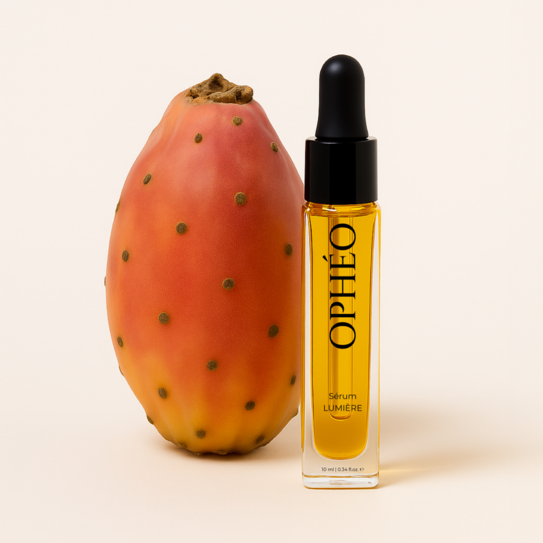 Figue de barbarie, immortelle corse, vitamine C THD et bakuchiol agissent en synergie pour illuminer, lisser et unifier les teints ternes et irréguliers.